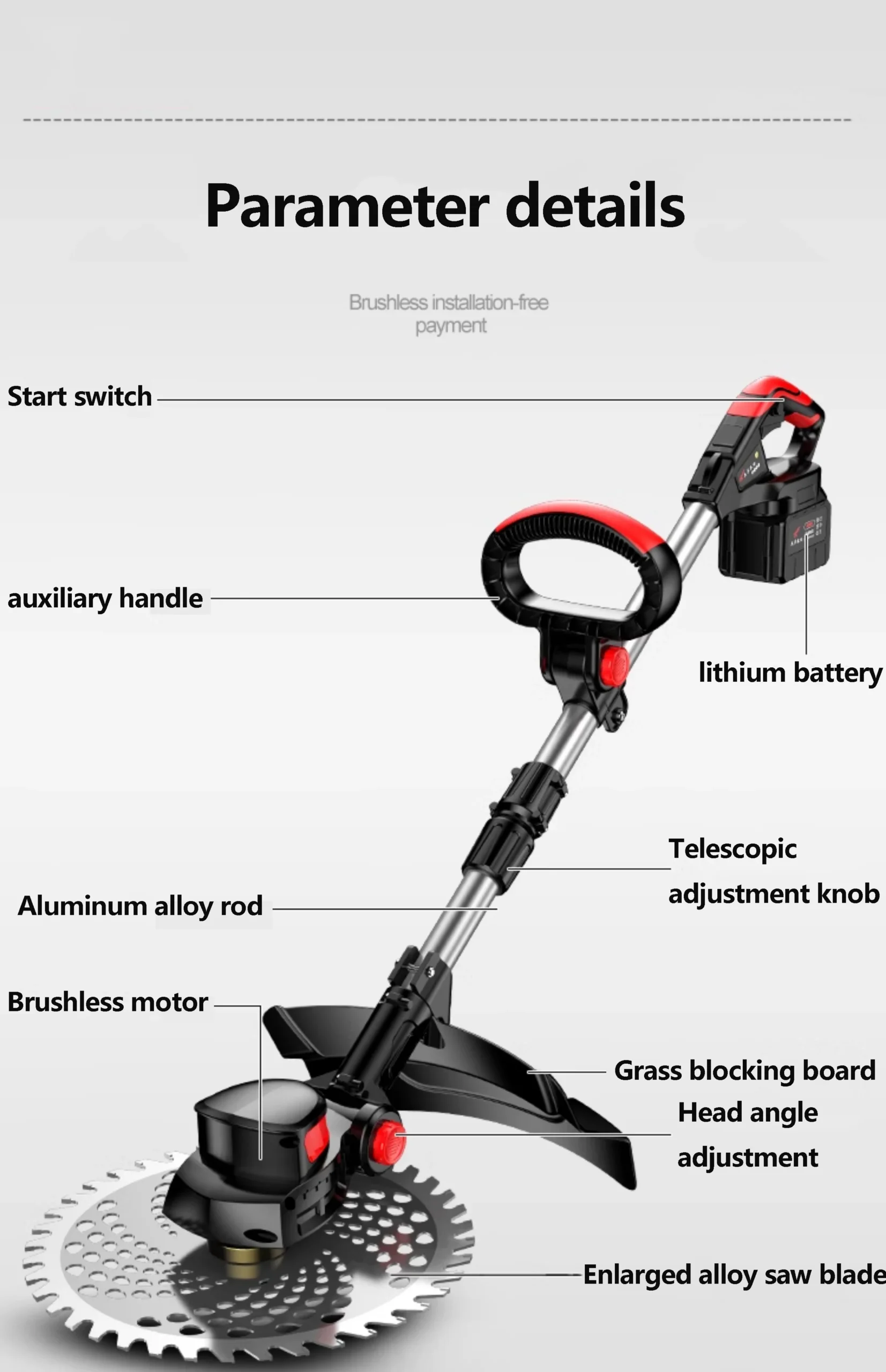 Brushless Electric Lawn Mower High-Power Lithium Battery Small Household Rechargeable Lawn Mower Lawn Mower